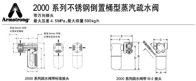 阿姆斯壮2000系列不锈钢蒸汽疏水阀的技术参数: